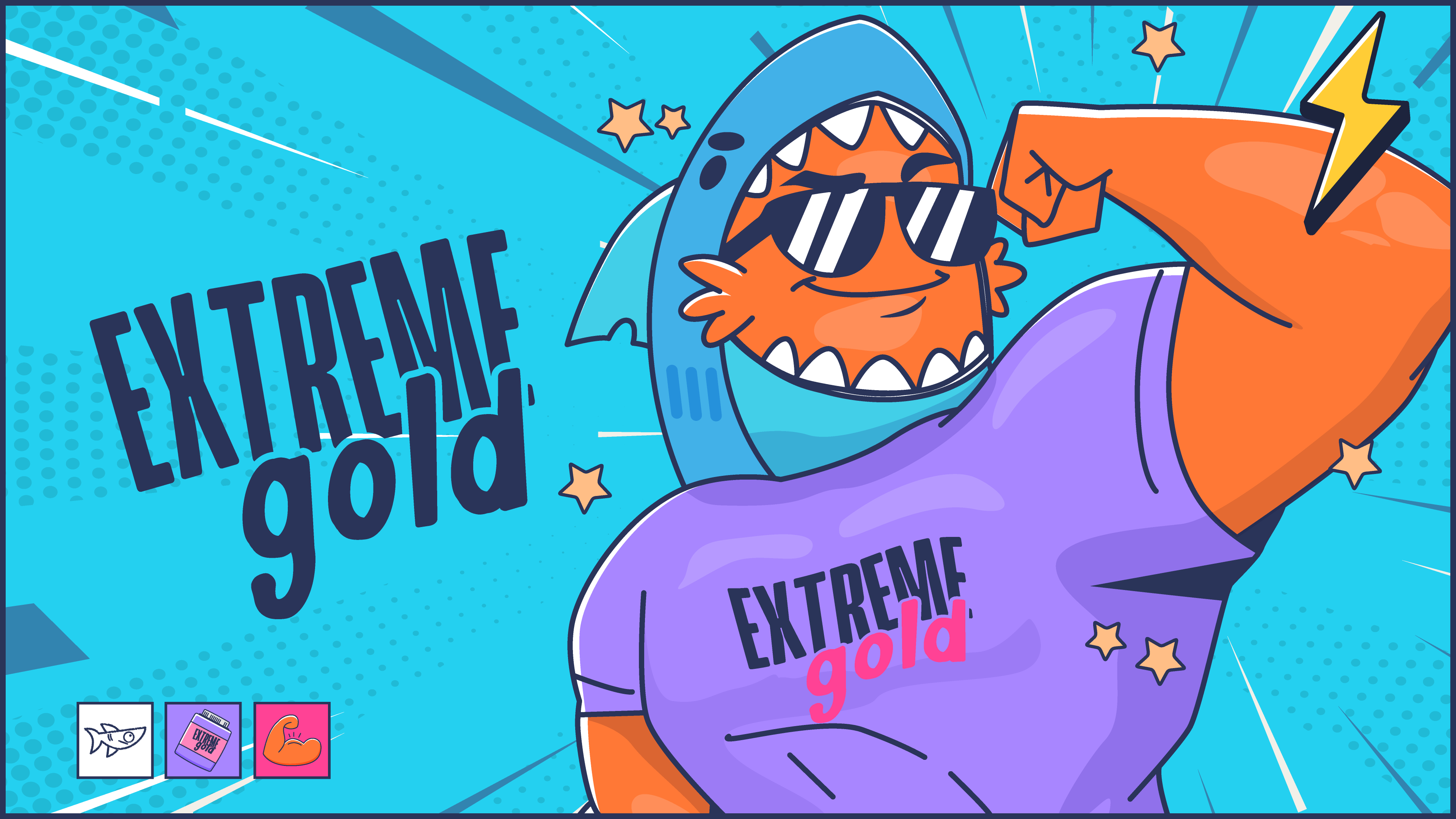 We created a mascot that represents the spirit of Extreme Gold in a light, fun, and memorable way: a small fish dressed as a shark. A perfect symbol for those who are constantly evolving , still small, but with the mindset of a predator.