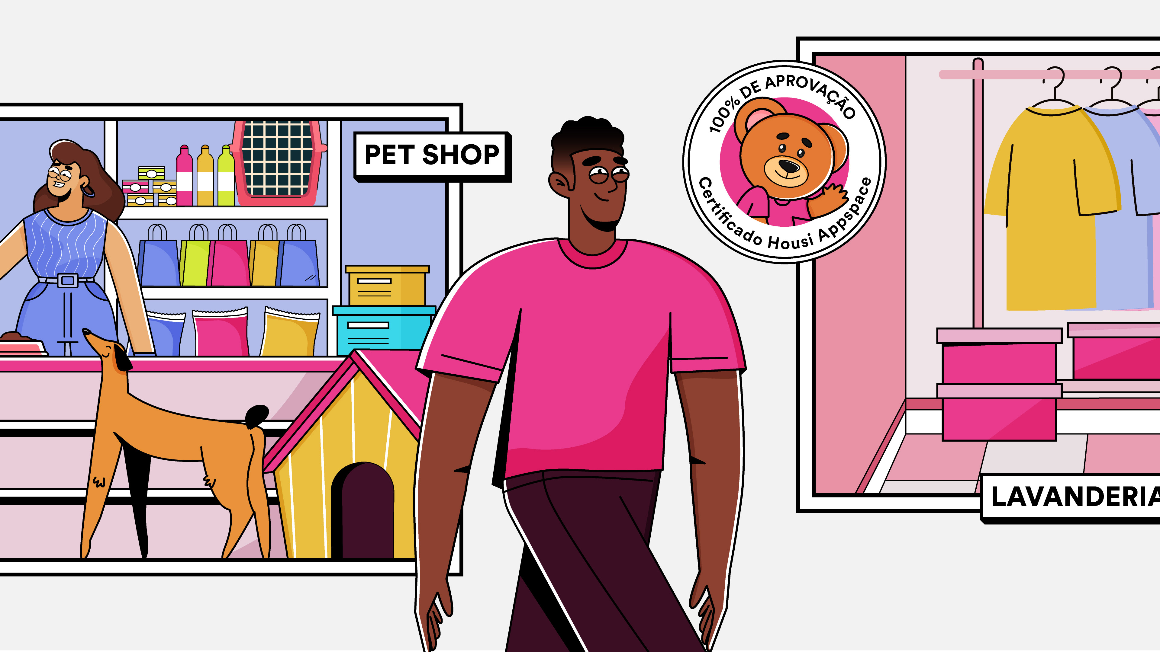 Criamos dois personagens principais para destacar o contraste entre a vida com e sem o Housi Appspace. João é o síndico que utiliza o Appspace, representado por ambientes organizados, cores vibrantes e uma rotina tranquila, sempre sorridente e com resultados positivos, como moradores felizes e uma gestão eficiente. Já Diogo, o síndico sem Appspace, vive rodeado de caos: escritórios bagunçados, fachada deteriorada e moradores insatisfeitos. As cenas reforçam essa diferença de maneira visual e simbólica, com tons vibrantes para João e neutros, quase monocromáticos, para Diogo. O contraste é ainda mais evidente em momentos como a rotina de trabalho e o estado do condomínio, destacando como o Appspace traz praticidade, eficiência e tempo para focar no que realmente importa.