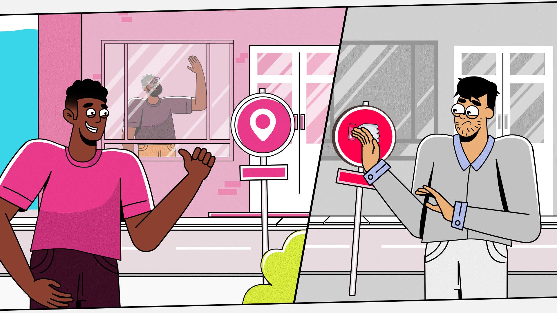 We created two main characters to highlight the contrast between life with and without Housi Appspace. João, the property manager using Appspace, is portrayed in organized environments with vibrant colors and a calm routine, always smiling and achieving positive results, such as satisfied residents and efficient management. On the other hand, Diogo, the manager without Appspace, is surrounded by chaos: messy offices, deteriorated building façades, and unhappy residents. The scenes emphasize this difference visually and symbolically, with vibrant tones for João and neutral, almost monochromatic shades for Diogo. The contrast becomes even more apparent in moments such as their work routines and the state of the condominium, showcasing how Appspace brings practicality, efficiency, and time to focus on what truly matters.